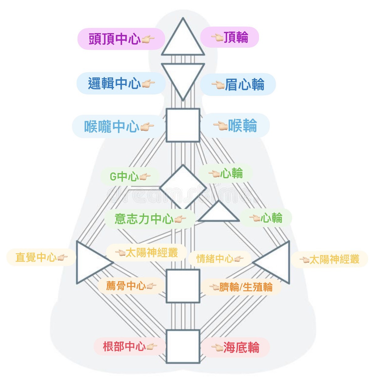 🧭G中心:為唯一的「定位中心」,是讓人感受到生命中的愛與方向的核心能量。它讓我們在生活中不斷叩問──我們是誰、對世界懷抱怎樣的愛、要往哪裡去。這些問題,正是G中心所引發的能量。