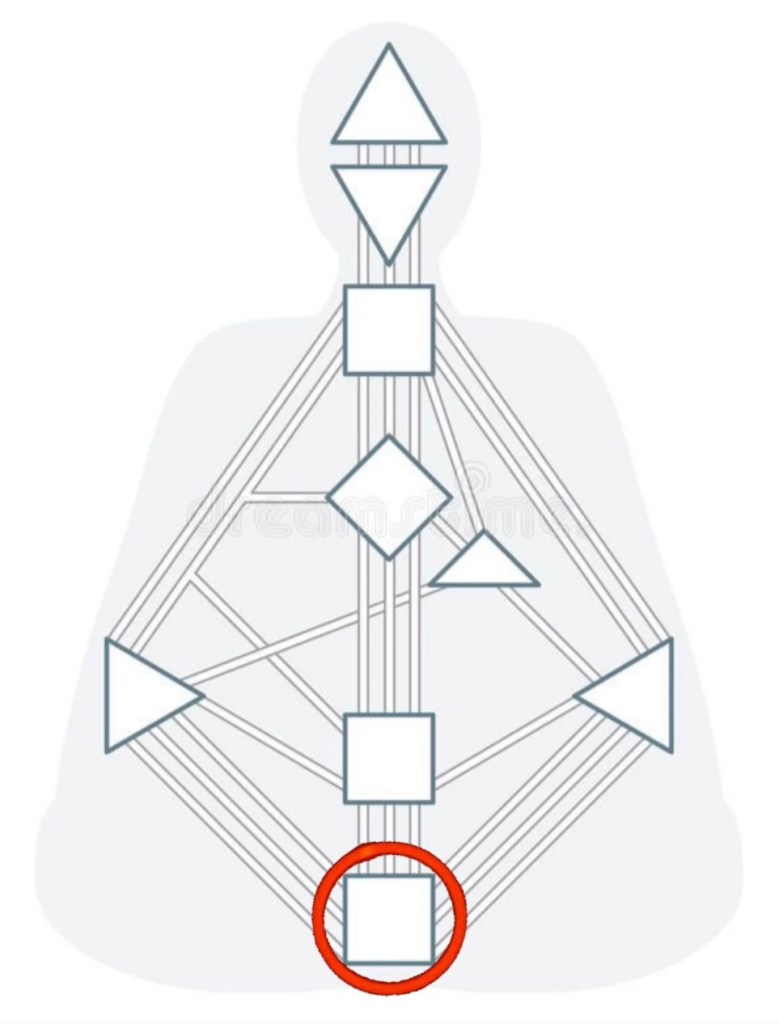 🦵根部中心:既為「壓力中心」之一(另一個為頭頂中心),也為「動力中心」之一(另外三個為意志力中心、情緒中心與薦骨中心)。壓力中心是推動人前進的能量中心;動力中心是讓人實際投入事務、參與世界的燃料,就像一顆電池,為行動注入電量,使人帶著動能展開實踐。根部中心帶來推動行動的壓力,就如火星塞點燃引擎,也像一股在體內震盪的催促感,讓人難以停留太久。根部中心是一切人類行動的起點,它推著人們去體驗情感、開啟建設、完善事務,是促使人開始行動的一股原始力量。