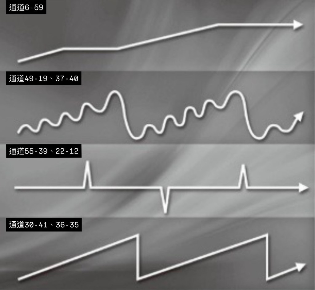 需特別注意通道37-40與通道49-19的完整情緒週期裡,會經歷數個小波峰與波谷。它們的動能表現為:稍微有動能 → 稍微失去動能 → 獲得更多動能 → 稍微失去動能 → 獲得比前一次更多的動能 → 稍微失去動能,直到抵達動能的最高峰後,會急遽降到最低谷,接著開啟下一個情緒週期。因此,有這兩條通道或其中任一條的人,需要感受情緒經歷過至少一次最高峰與最低谷後再做決定,而非將短期間內的小波峰與波谷誤認為完整的情緒週期。此外,通道6-59的情緒波動不太會在短時間內出現劇烈起伏:它的波形較為平緩,能量會在較長時間裡慢慢累積,並在與人建立親密的過程中緩慢上升,至高點後趨於穩定。然而,一旦經歷較大的衝突或界線被侵犯,能量可能突然斷裂,動能回到低谷。情緒中心的其他通道本質上都有其內在的自然週期;相較之下,通道6-59的起伏更常在親密互動中被喚醒,呈現為「外界情境 × 內在節律」的共構。若你擁有通道6-59,請給自己更長時間,細細感受情感是否累積到「真心想要實踐」的高點再做決定,能大幅降低日後後悔的可能。