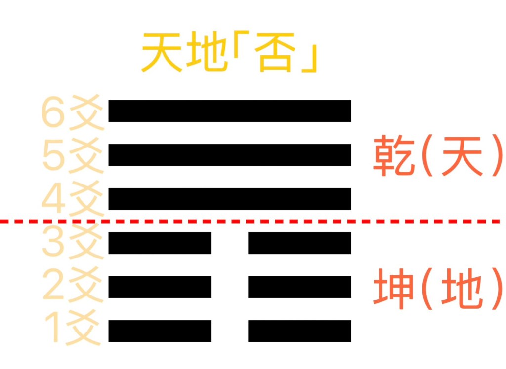 易經中的第12卦為「否」(ㄆㄧˇ)卦。「否」之卦象為上「乾」(天)、下「坤」(地),因此稱「天地否」。乾的能量為揚升的,坤的能量為下降的,而乾在上、坤在下,就形成「天地不交」的隔絕意象,與第11卦上坤下乾「地天泰」(天地交融)剛好相反。「否」卦象徵小人得勢、君子退居,此時,無論君子說什麼、做什麼,都將被否定,所以最好不說、不行動。然而,易經也告訴我們「否極泰來」的智慧:我們在險惡的景況中應堅守正道、謹慎行事、慢慢建立秩序,唯有如此,才能迎來泰平。