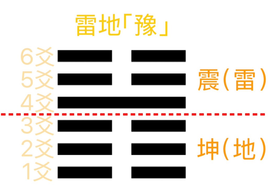 易經第16卦為「豫」卦。此卦為上「震」(雷)、下「坤」(地),故稱「雷地豫」;其卦象為「雷出地奮」,像是地氣醞釀已久,忽然震動而起,象徵春雷乍響、萬物甦醒,也寓意一種能喚起群體行動的集體氛圍。此時,地面隆隆作響,如樂聲般振奮鼓動,也有順應天時與群體氛圍、順勢而動的意味。「豫」本身帶有安樂、和悅的意涵,而在解釋上也常被延伸為「預作準備」的提醒——在情勢順遂、氛圍高昂之時,更要把握時機、整備資源,才能讓行動走得更遠。